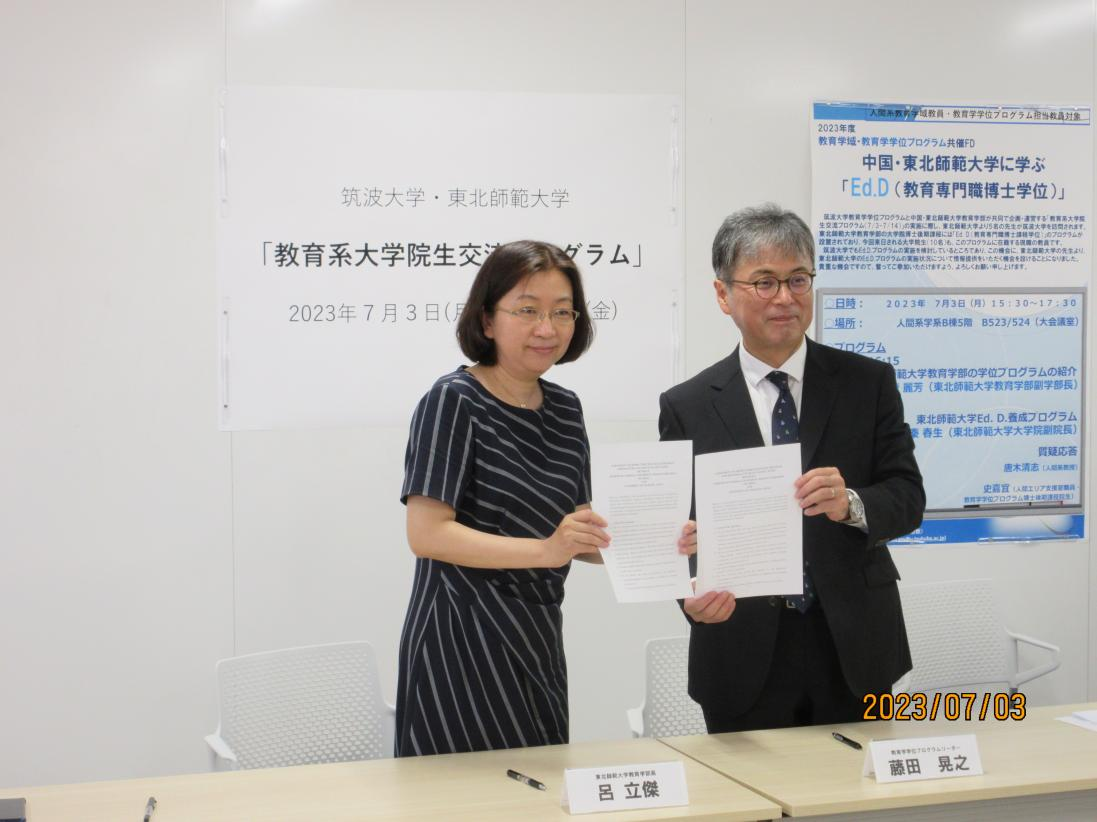 吕立杰与藤田晃之两位教授分别代表所在院系,共同签署两校在教育学领域的战略合作协议。今后两校学者将在教育学学科建设、学术研究和人才培养等方面开展更宽领域、更深层次、更高水平的交流合作。