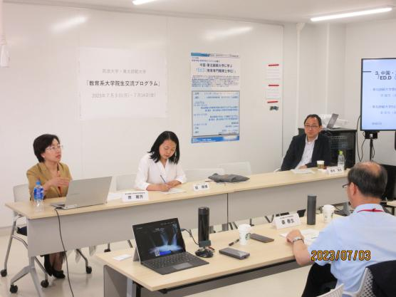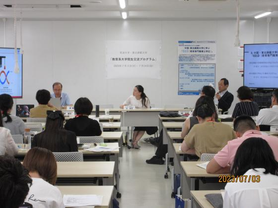 开幕式结束后,筑波大学人间系教授唐木清志教授和东北师范大学教育学部唐丽芳教授先后向两国师生介绍了两校办学特色和教育学专业建设及人才培养情况。我校研究生院副院长秦春生从目标定位、课程设置、培养举措等方面详细介绍了我校教育博士培养模式改革,引发了双方深入地讨论和交流。